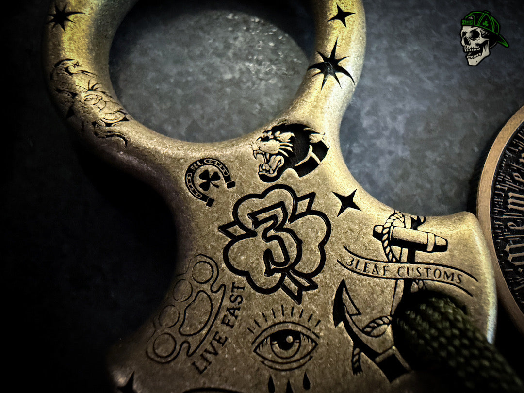 3LEAF CUSTOMS WAS BUILT ON THE IDEA THAT A PERSON SHOULD NEVER LEAVE SELF-PRESERVATION TO CHANCE, OR AS SOME MAY CALL IT; LUCK. I BELIEVE WHOLEHEARTEDLY IN BEING PREPARED, NOT ONLY WITH THE RIGHT TOOLS, BUT HAVING PROPER TRAINING OR PRACTICE TO EMPLOY THOSE TOOLS SHOULD THAT MOMENT COME. WHILE MY IDEAS AND DESIGNS MAY NOT BE SOMETHING "NEW" OR UNHEARD OF, THEY REMAIN MY PERSONAL "TWIST" ON ITEMS THAT CAN BE USED IN A BAD SITUATION.