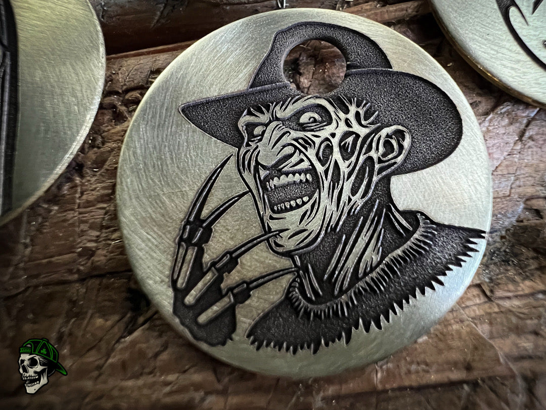 Tokens are made from 1" diameter solid brass tags with a securement hole in the top middle. Each has been engraved and brushed. Finishes on future runs may be different; you just have to see... THANK YOU FOR THE UNWAVERING SUPPORT. MUCH LOVE TO ALL OF YOU!