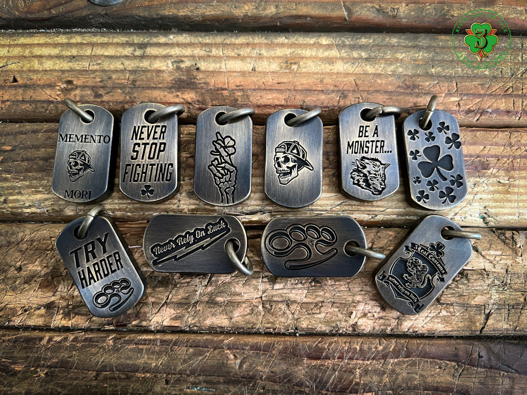 - I.D. Tags were created to be a simple carry, and something that can always be on your person. They're a backup to a backup, or possibly a first line of defense depending on the situation. Use this as a keychain, pendant, attach to cordage and use as a flail head, or just carry it as a reminder for motivation.