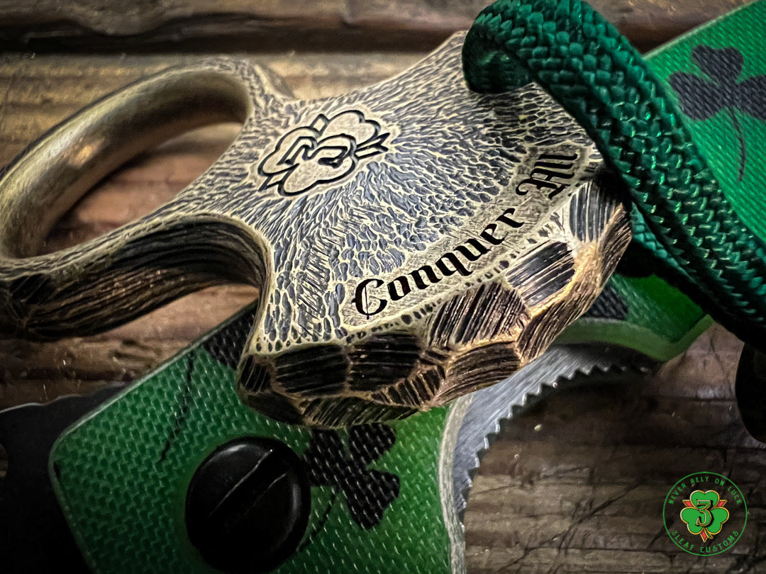 This No luck Charm was precision machined from solid brass. It is a V2 Low Pro model, meaning that it comes in at a slightly thinner brass than that of my standard offering. The Low Pro model is a favorite of many, as it can be carried with a multitude of varying outfits without worry of weighing you down.